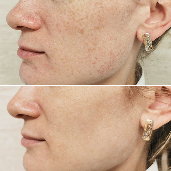 - Высокая избирательность, а это значит, что потемнение пигмента или покраснение возникают только на тех участках, где есть цветовые мишени. Малотравматично. Как правило, сразу после процедуры наблюдается умеренное покраснение, которое держится от 20 минут до 8 часов.